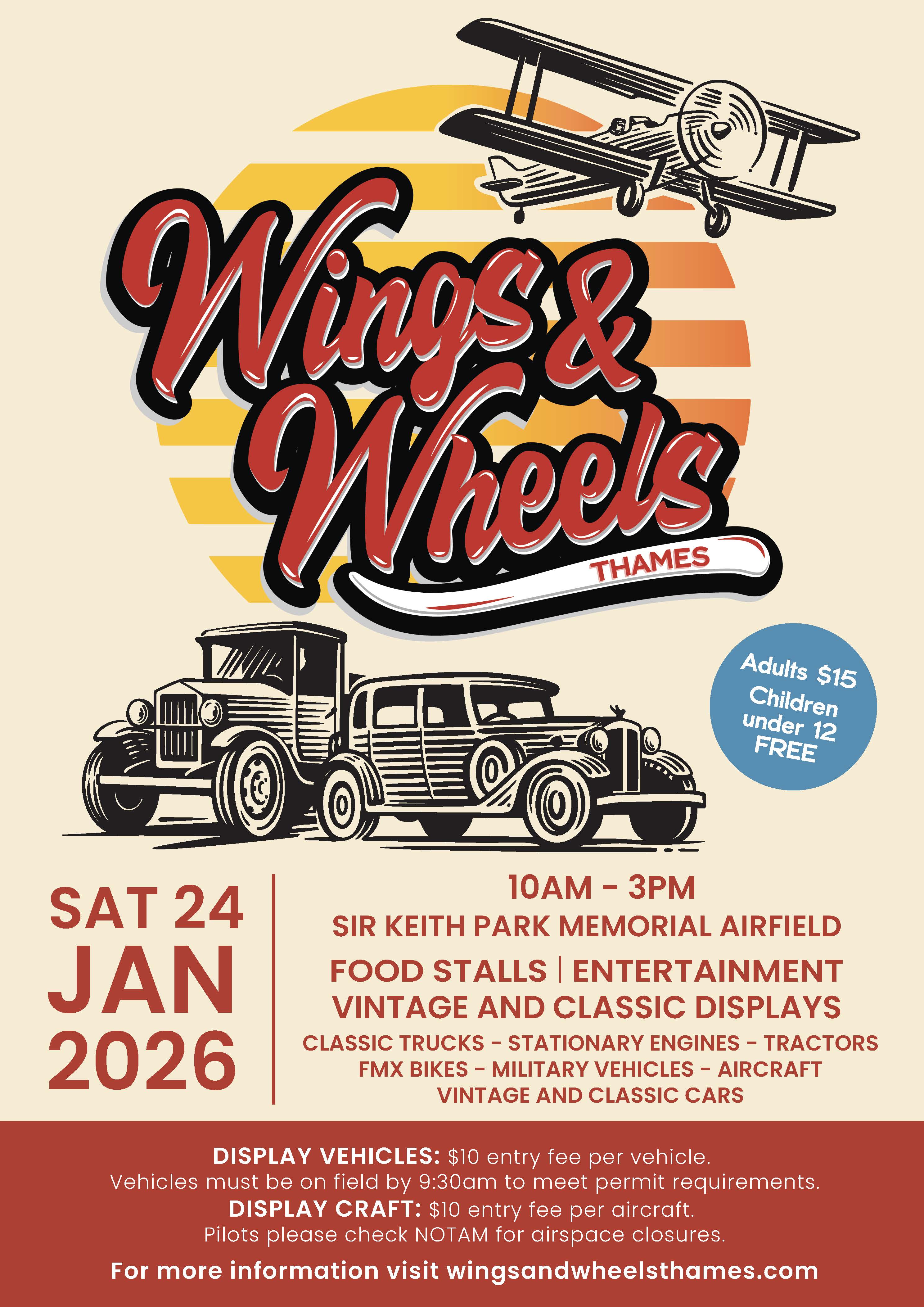 Sir Keith Park Airfield, Deeble Rd (off SH25/Pacific Coast Highway)Thames.
